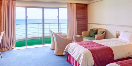 広々とした客室は全室オーシャンビュー、180度広がる東シナ海の眺めは最高です!
